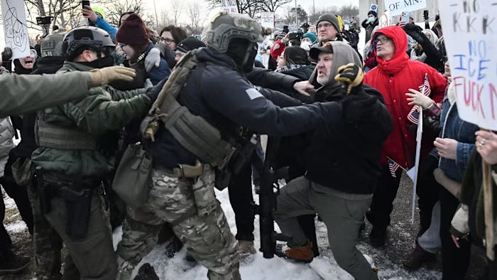 Do you believe the officers of any law enforcement agency in a free country should have “absolute immunity,” as JD Vance has said ICE agents have? Do you agree that reducing the amount of training these masked, heavily armed agents receive was wise? Do you feel that an agent calling a woman he just shot three times in the head a “fucking bitch” is professional behavior? There are very good reasons we are fighting this egregious federal overreach. —Joe